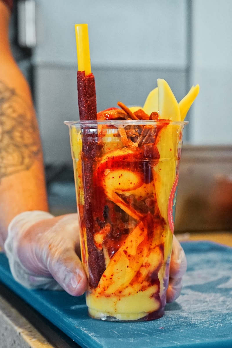When you walk in the doors it’s a whole vibe within itself. Staff were very welcoming and offered suggestions and customizations to make my order something that they knew that I would enjoy. I got my typical order which is a Chimango (mango with mango sorbet Chamoy tajin and candy). The snack was good and the fruit were sweet and fresh. They also have a little gaming area in the back so you can enjoy your food or beverage and hang out for a bit. I want to reiterate the customer service was top-tier and this will be my new spot to go to since it’s not that far from my job.